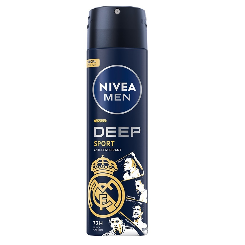 Poznaj Nivea Men Deep Sport antyperspirant spray 150ml – nowoczesny antyperspirant stworzony z myślą o aktywnych mężczyznach. Formuła MaxxTech z dodatkiem czarnego węgla zapewnia silną, 72-godzinną ochronę przed potem i nieprzyjemnym zapachem nawet podczas intensywnego wysiłku fizycznego. Energetyzujący, długotrwały zapach oraz skuteczne działanie antybakteryjne to gwarancja świeżości i komfortu przez cały dzień, bez podrażnień skóry. Produkt dermatologicznie przetestowany, oparty na ponad 100-letnim doświadczeniu marki NIVEA w pielęgnacji skóry.