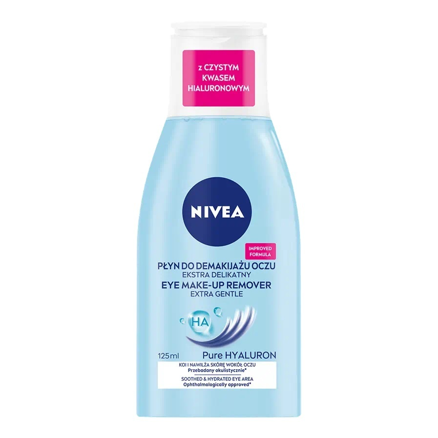 Odkryj ekstra delikatny płyn do demakijażu oczu Nivea Pure Hyaluron 125ml, stworzony z myślą o skutecznym i łagodnym usuwaniu makijażu oraz tuszu do rzęs. Ulepszona formuła z czystym kwasem hialuronowym nie tylko dokładnie oczyszcza wrażliwe okolice oczu, ale także intensywnie nawilża i koi skórę. Dzięki bezzapachowej, wegańskiej formule i braku składników pochodzenia zwierzęcego, produkt jest odpowiedni nawet dla osób noszących szkła kontaktowe oraz dla bardzo wrażliwej skóry. Butelka płynu została wyprodukowana w 96% z materiałów pochodzących z recyklingu*, co czyni go wyborem przyjaznym dla środowiska.