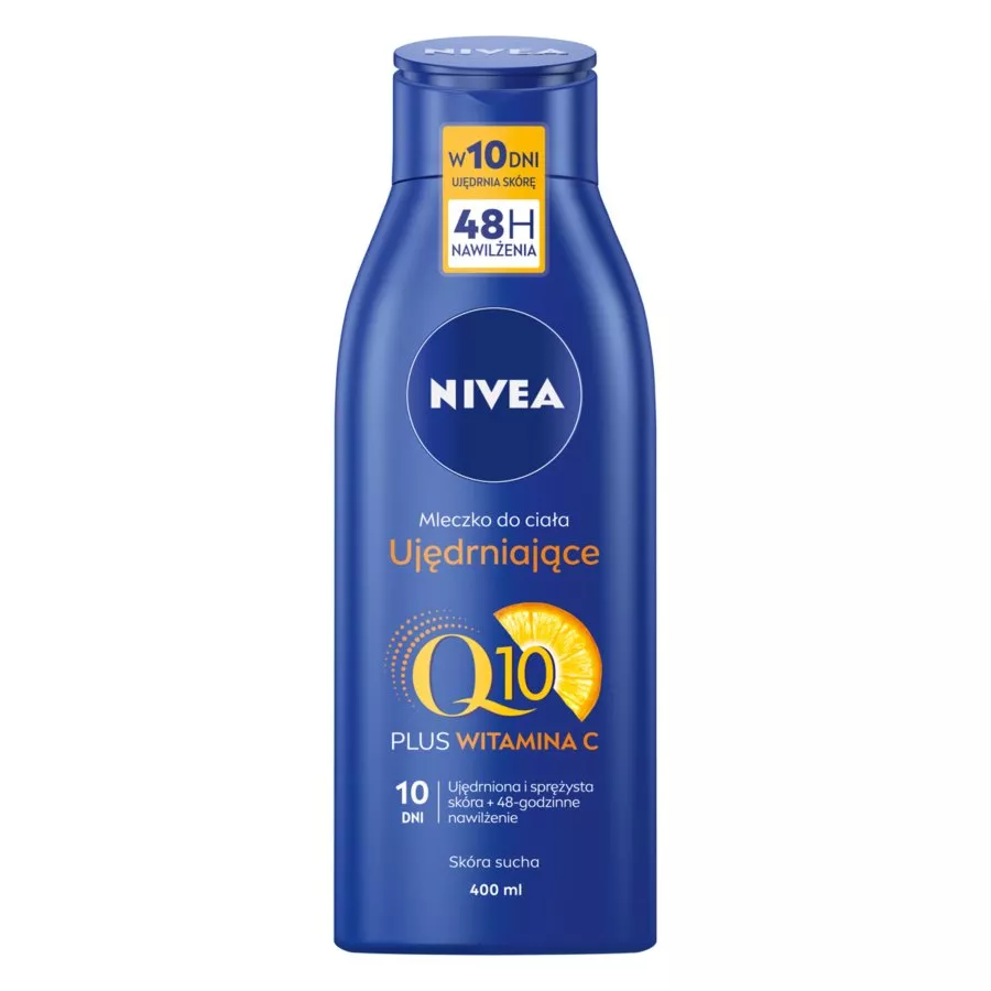 Nivea Q10 Plus ujędrniające mleczko do ciała to doskonały produkt przeznaczony specjalnie dla skóry suchej. Odżywia skórę, poprawia jej elastyczność i zapewnia widoczną jędrność w ciągu zaledwie 2 tygodni. Formuła wzbogacona w naturalny koenzym Q10 wzmacnia skórę, stymuluje odnowę komórek oraz widocznie ujędrnia i poprawia jej elastyczność. Olejek z orzeszków macadamia nawilża skórę i sprawia, że pozostaje gładka i odżywiona na dłużej. Udowodniona skuteczność: widocznie bardziej jędrna skóra po dwóch tygodniach stosowania.