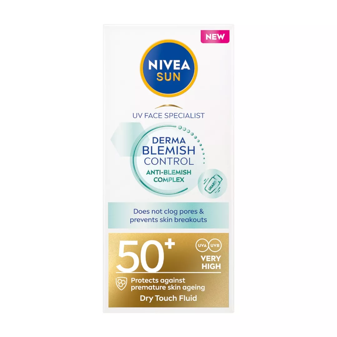 Fluid Derma Blemish Control SPF 50+ od Nivea Sun to idealne rozwiązanie dla delikatnej skóry twarzy. Specjalnie opracowany filtr przeciwsłoneczny chroni zdrową skórę od zewnątrz przed promieniami UVA/UVB oraz skutkami działania wysokoenergetycznego światła widzialnego (HEVL), takimi jak przedwczesne starzenie się skóry. Dodatkowo, składnik Licochalcone A, będący naturalnym przeciwutleniaczem, aktywuje mechanizmy obronne skóry, chroniąc jej komórki przed stresem oksydacyjnym.