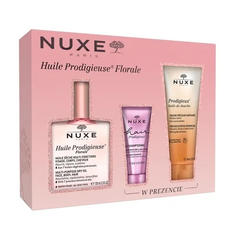 Zestaw Nuxe Huile Prodigieuse Florale to luksusowa kolekcja kosmetyków stworzona do pielęgnacji ciała, twarzy i włosów. Zawiera skuteczne składniki aktywne pochodzenia naturalnego oraz otula zmysłowymi, kwiatowymi nutami zapachowymi. Każdy produkt w zestawie został opracowany z myślą o odżywieniu, regeneracji i upiększeniu skóry oraz włosów, oferując codzienny rytuał pielęgnacyjny pełen przyjemności i relaksu.