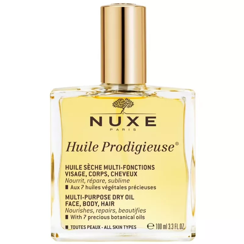 Nuxe Huile Prodigieuse to legendarny suchy olejek regenerujący, który dzięki zawartości siedmiu cennych olejków roślinnych i 98% naturalnych składników zapewnia długotrwałe nawilżenie twarzy i ciała. Jego działanie przeciwutleniające i "efekt tarczy chroniącej przed zanieczyszczeniami" pomaga w codziennej ochronie skóry, a także zmniejsza widoczność rozstępów. Olejek charakteryzuje się unikalną konsystencją i uzależniającym zapachem ze słonecznymi, zmysłowymi nutami, dostarczając chwil prawdziwej przyjemności.