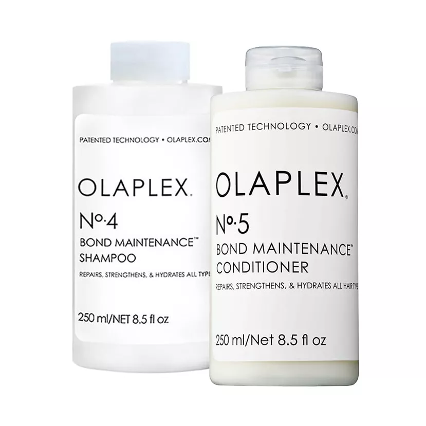 Odbuduj swoje włosy z zestawem Olaplex. Szampon odbudowujący Olaplex Bond Maintenance Shampoo naprawia wewnętrzną strukturę włosów zniszczonych zabiegami chemicznymi i sprawia, że są odpowiednio nawilżone. Zadbane i odbudowane włosy ładnie się układają i pięknie błyszczą. A dzięki nawodnieniu nie puszą się. Szampon można stosować do każdego rodzaju włosów. Odżywka regenerująca Olaplex Conditioner No. 5 to doskonały kosmetyk, który naprawia uszkodzenia włosów w wyniku zabiegów chemicznych i regeneruje kosmyki. Dzięki stosowaniu tego kosmetyku udaje się odbudować wiązania dwusiarczkowe. To dobre rozwiązanie dla każdego typu włosów.