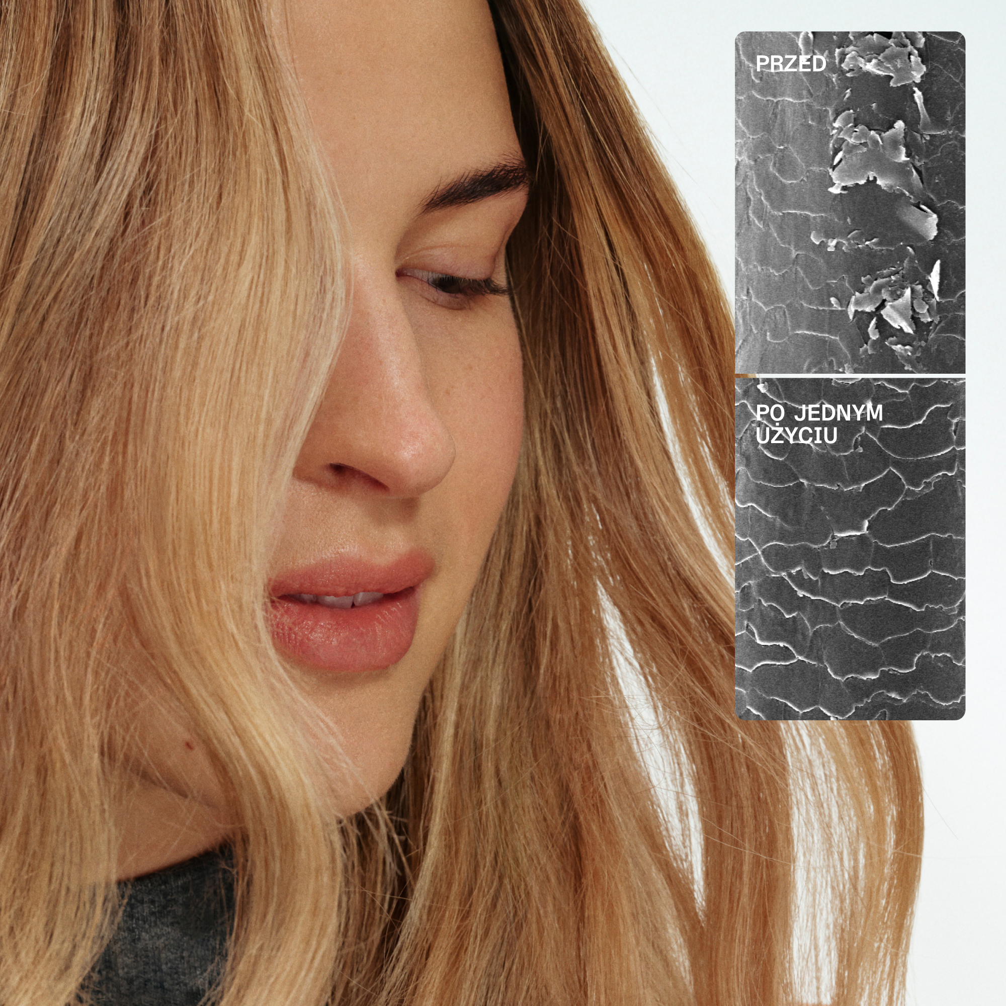 - Natychmiastowe wzmocnienie włosów oraz wyraźna poprawa miękkości i elastyczności.