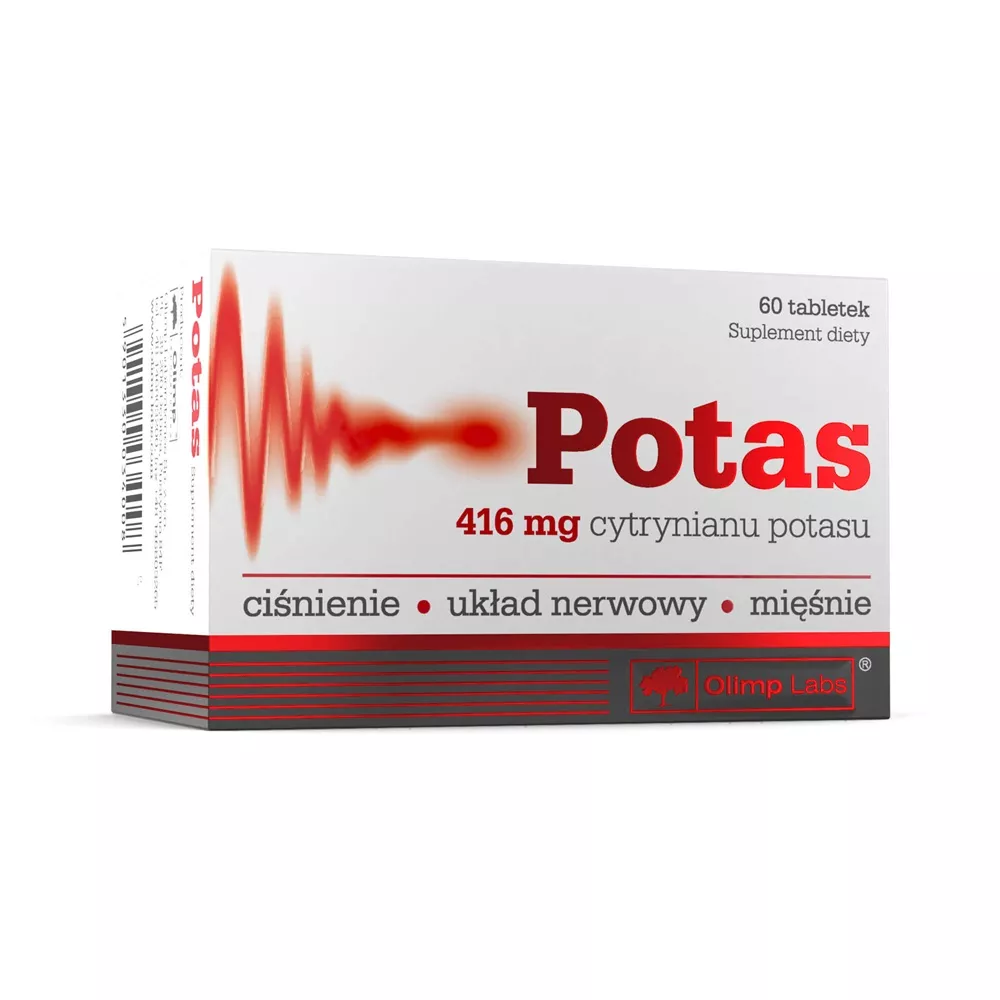 Olimp Labs Potas 416 mg to suplement diety zawierający cytrynian potasu, który jest wysoko przyswajalnym źródłem tego niezbędnego składnika mineralnego. Potas odgrywa kluczową rolę w funkcjonowaniu wszystkich organizmów żywych.