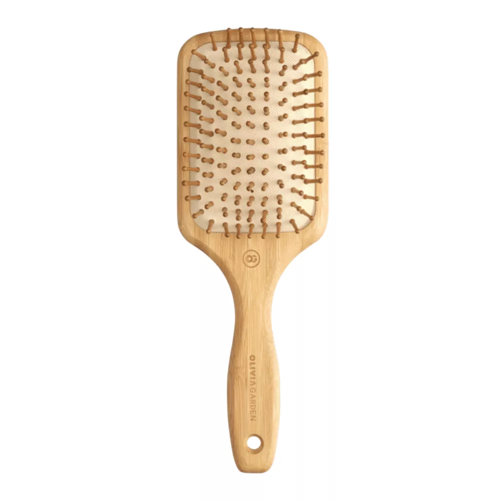 Olivia Garden Bamboo Touch to duża szczotka wiosłowa przeznaczona do masażu skóry głowy. Świetnie sprawdzi się zarówno w salonie fryzjerskim, jak i w domu. Szczotka Olivia Garden przywraca włosom blask i równowagę, pomaga stymulować porost włosów oraz redukuje ich wypadanie. Jest antystatyczna oraz posiada jonizowaną poduszkę.