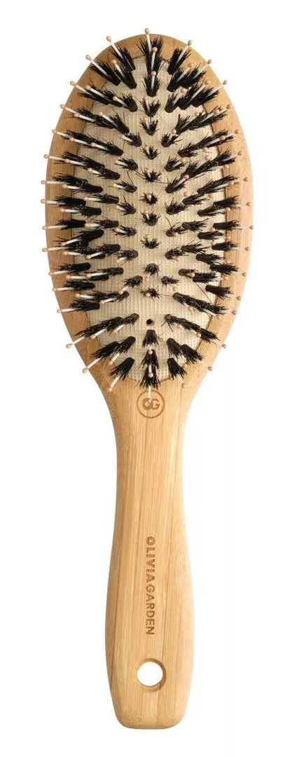 Lubisz żyć w zgodzie z ekologią? Teraz to jeszcze prostsze. Szczotka do włosów Olivia Garden Bamboo Touch Combo wykonana została z naturalnego bambusa. Jest on wyjątkowy ponieważ jest o wiele mocniejszy i bardziej wytrzymały od drewna, a mimo to jest o wiele lżejszy. Szczotka ta jest unikalna jeszcze pod paroma względami. Po pierwsze, posiada właściwości antystatyczne i antybakteryjne. Oznacza to, że chroni przed elektryzowaniem się włosów i jest bezpieczna. Co ważne, posiada jonizowaną poduszkę. Doskonale masuje skórę głowy, aktywując cyrkulację w komórkach krwionośnych. W praktyce oznacza to, że efektywnie stymuluje porost włosów oraz widocznie redukuje ich wypadanie. Twoje komórki włosa i skóra głowy otrzymują należyte wsparcie. W efekcie równowaga i blask włosów zostają przywrócone. Szczotka posiada włosie mieszane.