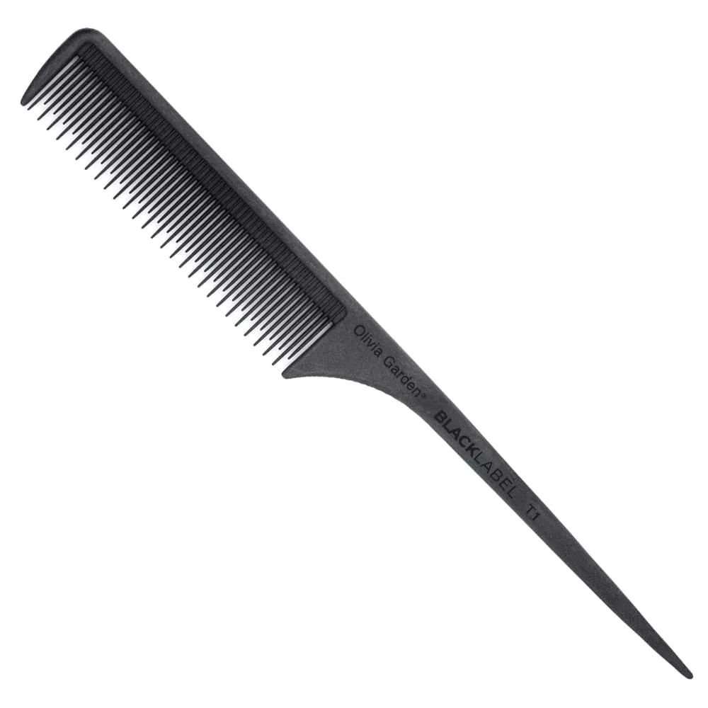 Profesjonalny grzebień do włosów Olivia Garden Black Label jest niezastąpiony podczas tapirowania i farbowania włosów. Włókno węglowe, z którego wykonano grzebień, jest bardzo wytrzymałe (również na środki chemiczne i wysoką temperaturę), a zarazem lekkie. Specjalnie zaokrąglone ząbki grzebienia nie podrażniają skóry głowy podczas czesania. Szpikulec ułatwia szybki podział włosów na sekcje. Warto dodać, że grzebień został wykonany w zaawansowanej technologii, dzięki czemu podczas zabiegów łuski włosów zostają domknięte. Pasma są gładkie i lśniące, nie puszą się i nie elektryzują.