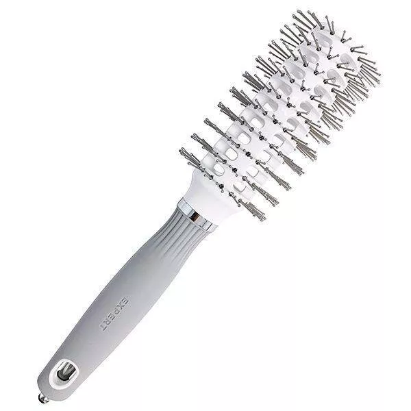 Olivia Garden Expert Blowout Vent, szczotka do suszenia włosów z podwójnym włosiem, Double Bristles White&Grey 45mm