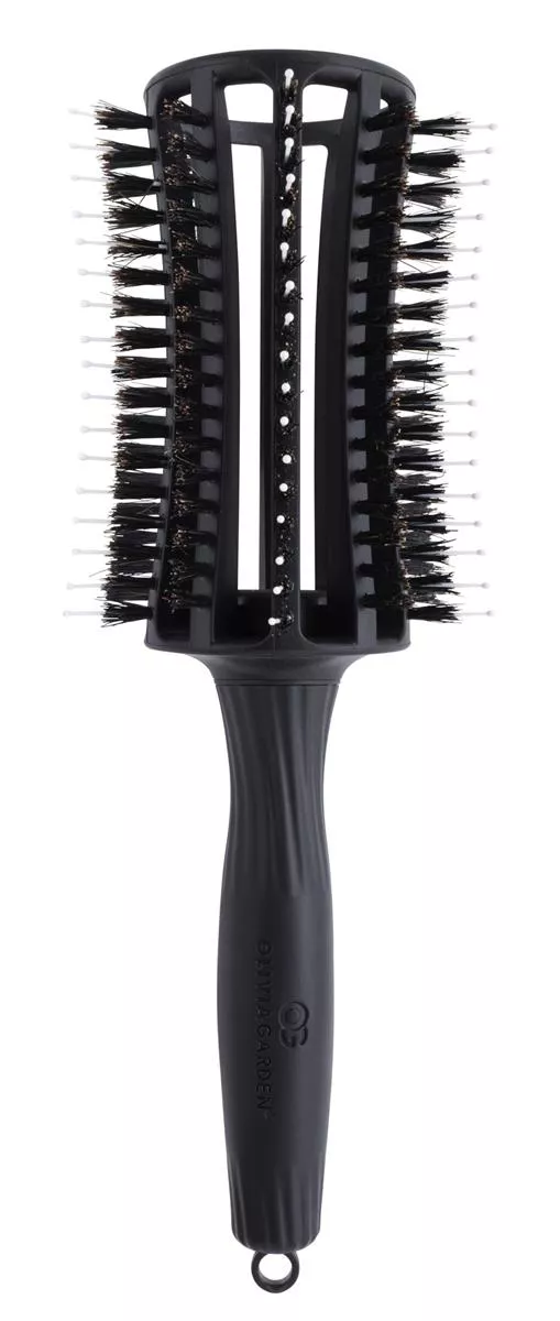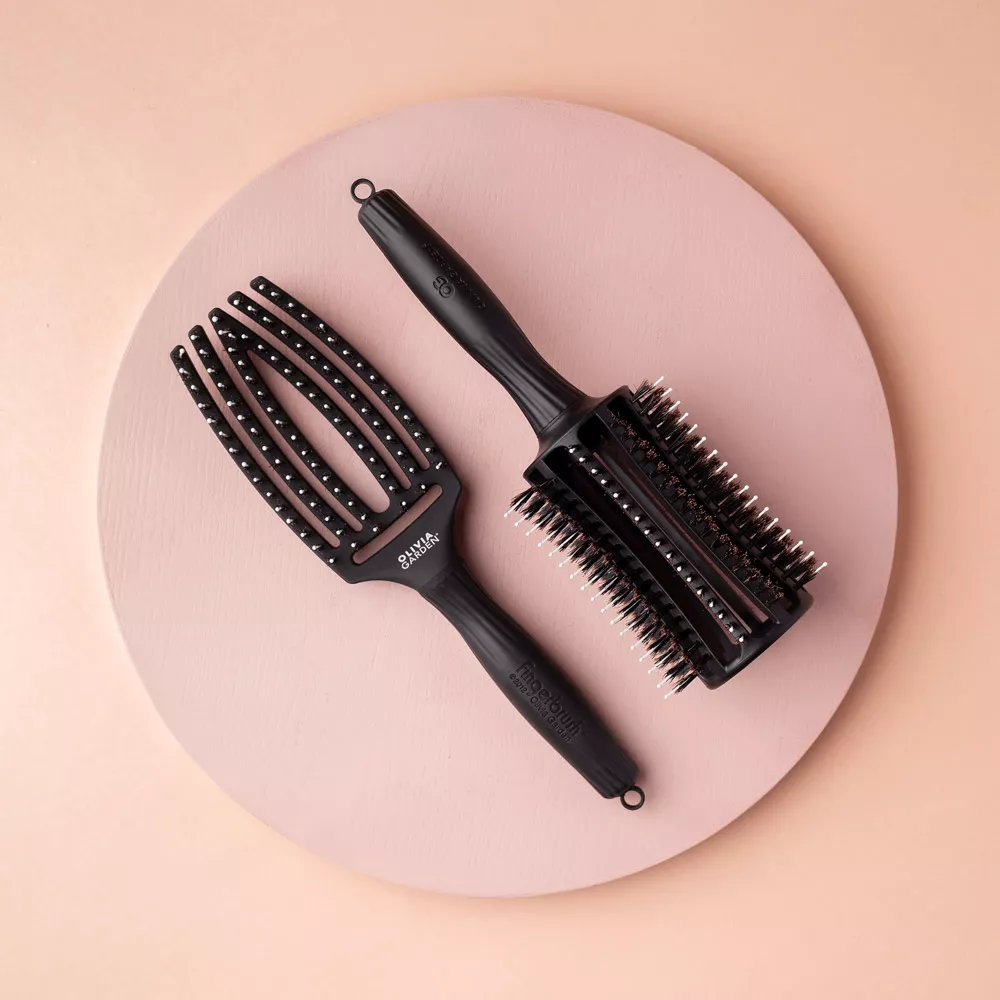 Szczotka Olivia Garden Finger Brush Round posiada specjalnie profilowany kształt głowicy, dzięki temu lepiej masuje skórę głowy. Oprócz tego wyróżnia ją specjalne połączenie antystatycznych kolców zakończonych kulką z 100% włosia z dzika. Włosy zyskują objętości oraz blasku. Idealnie sprawdzi się zarówno w salonie fryzjerskim oraz w domowym zaciszu. Specjalna wersja z okrągłą głowicą jest idealna do modelowania wlosów na szczotkę. Zapewnia doskonałą cyrkulację powieytrza. Ułatwia układanie i przyspiesza suszenie.