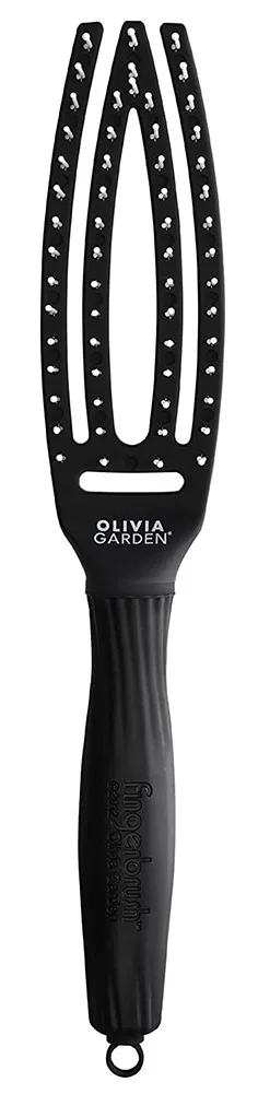 Zapomnij o ciągnięciu włosów podczas szczotkowania, o ich łamaniu i szarpaniu się z kołtunami. Szczotkowanie włosów może być łatwe i przyjemne. Sięgnij po szczotkę do włosów Olivia Garden Finger Brush ze specjalnie zaprojektowanymi nylonowymi ząbkami. Uwaga: model nie posiada włosia z dzika. Wypustki mają na końcówkach kuleczki, dzięki czemu nie podrażniają skóry głowy. A nawet więcej, bo ta szczotka dodatkowo masuje skórę głowy. Specjalne rozłożenie wypustek sprawia, że rozczesywanie włosów jest szybkie, bezbolesne i przyjemne. Szczotka posiada też wyciągany szpikulec i antypoślizgową rączkę.