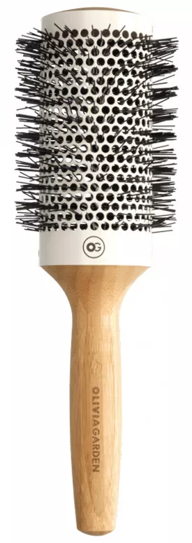 Olivia Garden Healthy Hair Thermal to babmusowa szczotka okrągła do modelowania włosów. Świetnie sprawdzi się zarówno w salonie fryzjerskim, jak i w domu. Szczotka Olivia Garden przywraca włosom blask i równowagę, pomaga stymulować porost włosów oraz redukuje ich wypadanie. Jest antystatyczna. Ceramiczna powłoka zapewnia równomierne rozprowadzanie ciepła i szybkie suszenia. Szczotka pomaga wygładzić włosy i odbić je u nasady podczas suszenia/modelowania z suszarką do włosów. Zastosowano włosie nylonowe, które jest odporne na ciepło.
