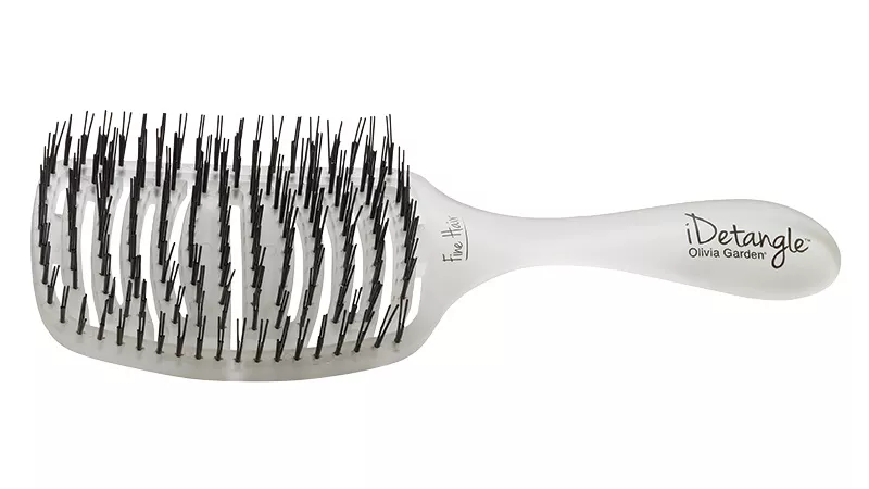 Szczotka Olivia Garden iDetangle przeznaczona jest do rozczesywania włosów cienkich. Szczotka nie ciągnie włosów oraz ich nie wyrywa. Elastyczna, wentylowana konstrukcja równomiernie rozprowadza nacisk podczas szczotkowania włosów. Ze względu na wyjątkowy kształt dostosowuje napięcie w zależności od rodzaju włosów i skóry głowy. Podwójne włosie gwarantuje dokładne rozczesanie włosów w kilka chwil. W korpusie znajdują się duże otwory, który ułatwiają przepływ powietrza oraz zapewniają szybsze suszenie. Co ważne, szczotka jest bardzo lekka, dzięki temu nie obciąża nadgarstka w trakcie stylizacji.