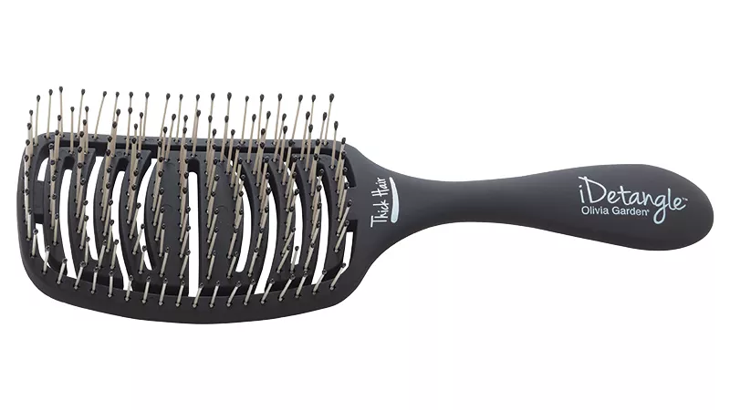 Szczotka Olivia Garden iDetangle przeznaczona jest do rozczesywania włosów grubych. Szczotka nie ciągnie włosów oraz ich nie wyrywa. Elastyczna, wentylowana konstrukcja równomiernie rozprowadza nacisk podczas szczotkowania włosów. Ze względu na wyjątkowy kształt dostosowuje napięcie w zależności od rodzaju włosów i skóry głowy. W korpusie znajdują się duże otwory, który ułatwiają przepływ powietrza oraz zapewniają szybsze suszenie. Co ważne, szczotka jest bardzo lekka, dzięki temu nie obciąża nadgarstka w trakcie stylizacji.