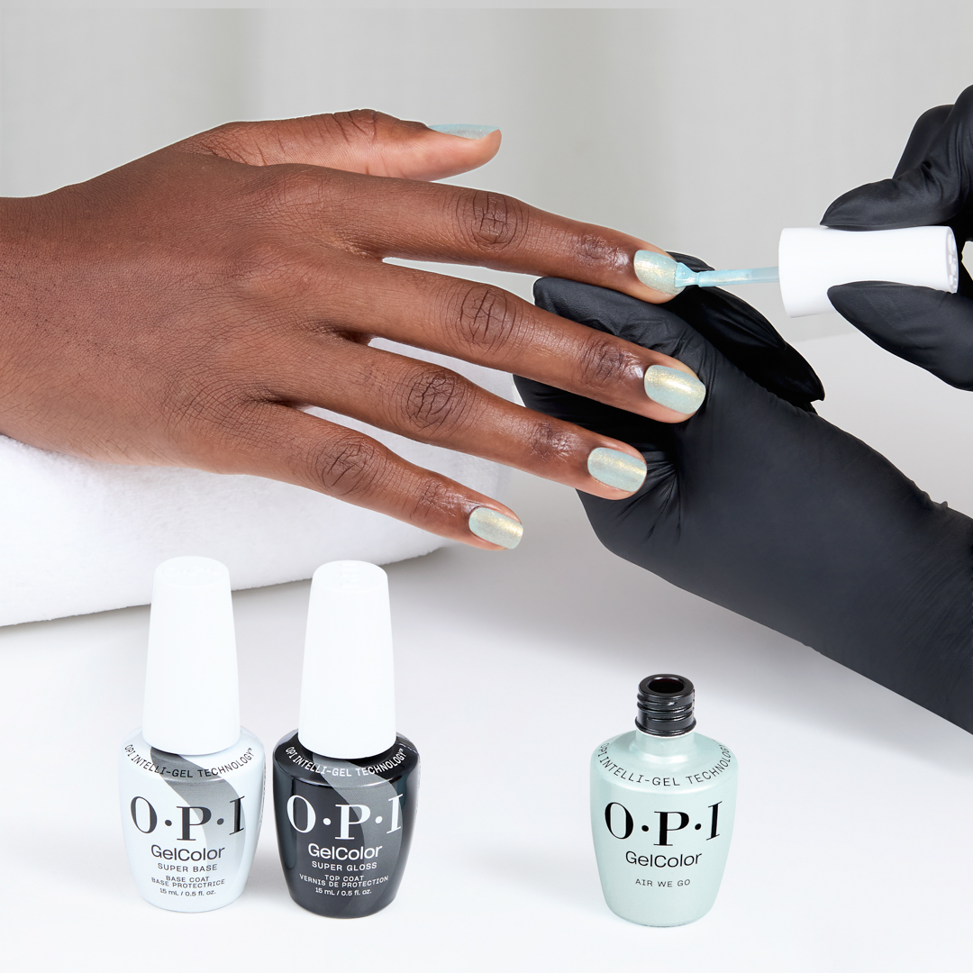 Aby uzyskać długotrwały efekt, przygotowanie paznokci jest kluczowe. Nałóż warstwę preparatu Bond-Aid pH Balancing Agent na każdy paznokieć. Wstrząśnij buteleczkę GelColor Super Base Base Coat przez 1 minutę, a następnie nałóż jedną warstwę bazy. Zabezpiecz wolny brzeg paznokcia i utwardzaj przez 30 sekund w lampie OPI STAR LIGHT. Następnie nałóż cienką warstwę wybranego koloru, utwardzaj przez 30 sekund i powtórz. Na koniec nałóż OPI GelColor Super Gloss Top Coat, utwardzaj i usuń lepką warstwę za pomocą wacika nasączonego N.A.S. 99.