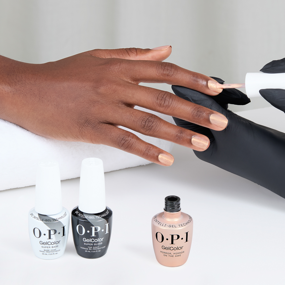 Aby uzyskać najlepsze rezultaty, przygotuj paznokcie za pomocą Bond-Aid pH Balancing Agent, a następnie nałóż jedną warstwę GelColor Super Base Base Coat. Utwardzaj przez 30 sekund w lampie OPI STAR LIGHT. Następnie nałóż dwie cienkie warstwy lakieru kolorowego, każdą utwardzając przez 30 sekund. Na koniec nałóż GelColor Super Gloss Top Coat, zabezpieczając wolny brzeg paznokcia. Usuń lepką warstwę za pomocą N.A.S. 99.