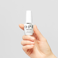 Aby zapewnić trwałość manicure GelColor, zacznij od nałożenia warstwy Bond-Aid pH Balancing Agent. Przed użyciem wstrząśnij buteleczkę bazy przez 1 minutę, a następnie nałóż jedną warstwę krótkimi pociągnięciami pędzelka, zabezpieczając wolny brzeg paznokcia. Utwardzaj przez 30 sekund w lampie OPI STAR LIGHT. Następnie nałóż wybrany kolor i top coat zgodnie z zaleceniami, utwardzając każdą warstwę przez 30 sekund. Na koniec usuń lepką warstwę za pomocą wacika nasączonego N.A.S. 99.