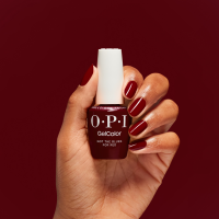 Aby uzyskać trwały efekt, przygotuj paznokcie, nakładając Bond-Aid pH Balancing Agent. Wstrząśnij GelColor Super Base Base Coat, nałóż cienką warstwę i utwardzaj przez 30 sekund. Nałóż dwie cienkie warstwy lakieru, utwardzając każdą przez 30 sekund. Na koniec nałóż OPI GelColor Super Gloss Top Coat i utwardzaj. Usuń lepką warstwę za pomocą N.A.S. 99.