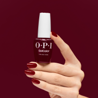 Aby uzyskać trwały manicure, rozpocznij od nałożenia jednej warstwy Bond-Aid pH Balancing Agent. Następnie wstrząśnij GelColor Super Base Base Coat i nałóż jedną warstwę, zabezpieczając wolny brzeg paznokcia. Utwardzaj w lampie przez 30 sekund. Po wstrząśnięciu wybranego koloru nałóż cienką warstwę, zabezpieczając krawędź paznokcia, i ponownie utwardzaj przez 30 sekund. Zastosuj drugą warstwę koloru, a następnie nałóż OPI GelColor Super Gloss Top Coat, utwardzając go przez 30 sekund. Usuń lepką warstwę za pomocą wacika nasączonego N.A.S. 99.