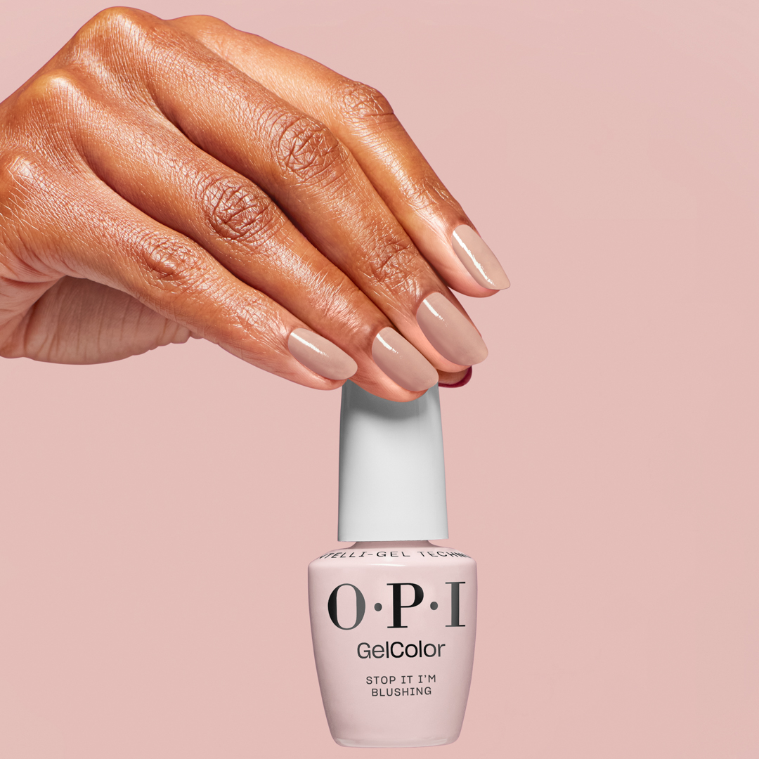 Aby uzyskać najlepsze rezultaty, przygotuj paznokcie, aplikując Bond-Aid pH Balancing Agent. Następnie dobrze wstrząśnij GelColor Super Base Base Coat i nałóż cienką warstwę. Utwardzaj przez 30 sekund w lampie OPI STAR LIGHT. Nałóż cienką warstwę lakieru "Stop It I'm Blushing", utwardzaj, a następnie powtórz. Zakończ aplikacją OPI GelColor Super Gloss Top Coat, utwardzaj i usuń lepką warstwę za pomocą N.A.S. 99.