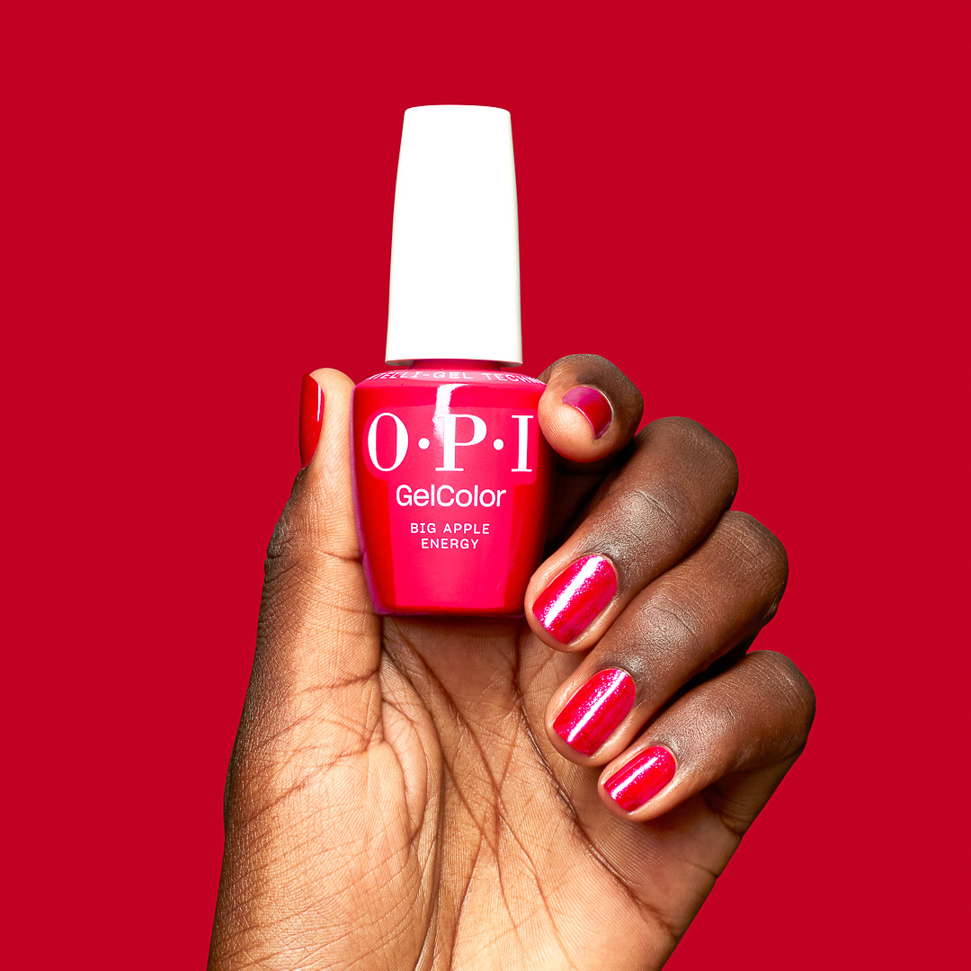 Aby uzyskać maksymalną trwałość i intensywny efekt koloru, odpowiednio przygotuj paznokcie. Nałóż jedną warstwę preparatu Bond-Aid pH Balancing Agent na każdy paznokieć. Przed nałożeniem bazy wstrząśnij buteleczką GelColor Super Base Base Coat przez 1 minutę, a następnie nałóż cienką warstwę produktu, zabezpieczając wolny brzeg paznokcia. Utwardzaj w lampie OPI STAR LIGHT przez 30 sekund. Nałóż dwie cienkie warstwy lakieru Big Apple Energy, każdą utwardzając przez 30 sekund. Następnie nałóż warstwę OPI GelColor Super Gloss Top Coat i ponownie utwardzaj przez 30 sekund. Usuń lepką warstwę topu za pomocą wacika nasączonego N.A.S. 99.