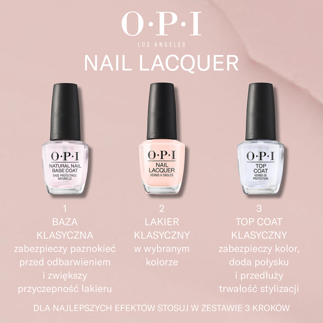Aby uzyskać najlepsze rezultaty, nanieś lakier OPI Nail Lacquer Malaga Wine na bazę OPI dostosowaną do potrzeb Twoich paznokci. Następnie nałóż dwie cienkie warstwy lakieru, pozwalając każdej z nich dokładnie wyschnąć. Dla jeszcze lepszej trwałości i ochrony koloru, zakończ aplikację stosując Top Coat OPI.