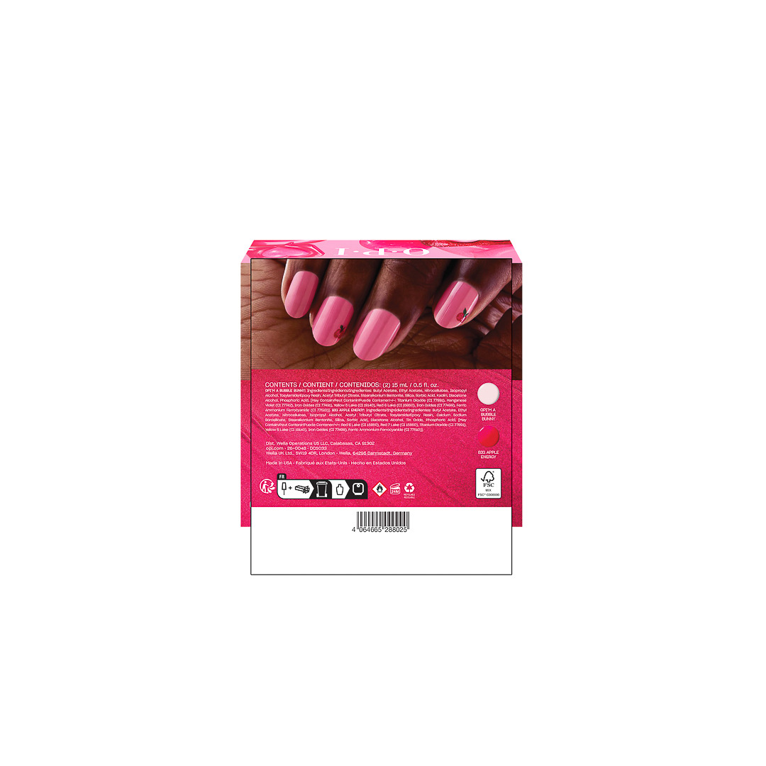 - Zestaw dwóch kultowych odcieni: OPI?m a Bubble Bunny oraz Bathtime Bubbly
