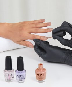 Nałóż cienką warstwę bazy OPI NTT10, zabezpieczając wolny brzeg, i pozostaw do wyschnięcia na 1-2 minuty.