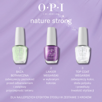 Aby uzyskać najlepsze rezultaty, nałóż lakier OPI Nature Strong na bazę botaniczną OPI. Nakładaj dwie cienkie warstwy lakieru w wybranym kolorze, pozwalając wyschnąć każdej z nich. Dla zabezpieczenia koloru i przedłużenia trwałości stylizacji, na koniec nałóż wegański Top Coat OPI.