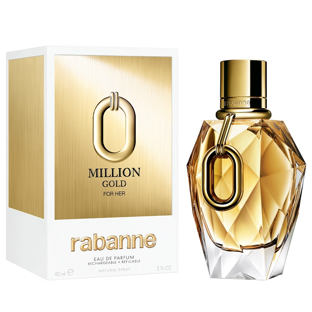 Paco Rabanne Million Gold For Her woda perfumowana refillable spray 90ml to prawdziwa perła w świecie zapachów. Ożywiona w jednej chwili, poczuj ekscytację i blask złotego sukcesu. Ten zapach emanuje błyszczącą energią, która sprawi, że poczujesz się, jakbyś zanurzała się w złocistej euforii.