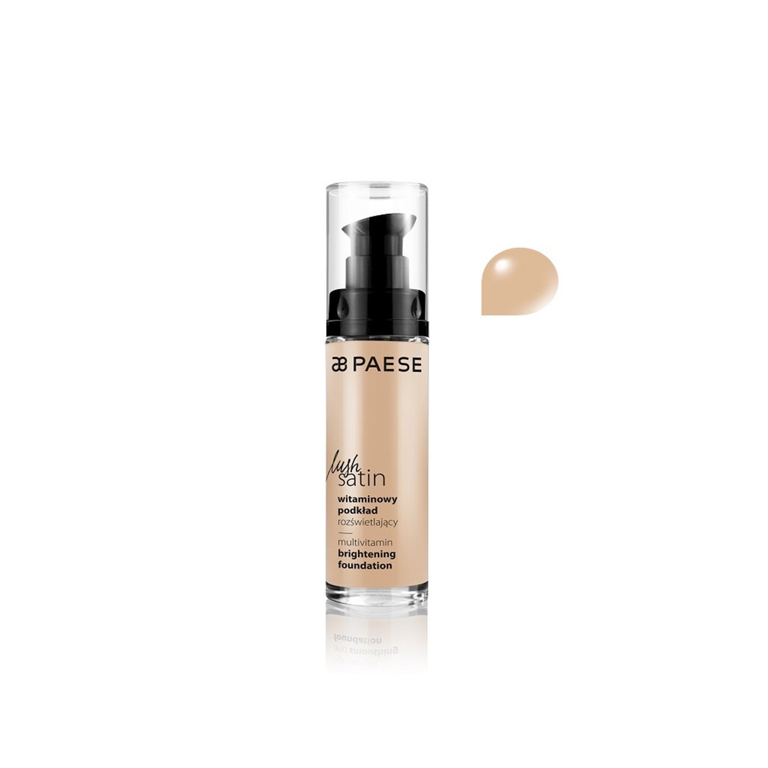 Paese Lush Satin Multivitamin Brightening Foundation to witaminowy podkład rozświetlający, idealny dla cery zmęczonej, suchej i normalnej. Jego lekka formuła, wzbogacona o wyciągi z owoców tropikalnych, nawilża, odżywia i poprawia koloryt cery, nadając jej zdrowy i świeży wygląd. Podkład delikatnie rozjaśnia skórę, zapewniając efekt subtelnego blasku oraz wygładzając i ujednolicając koloryt cery. Dodatkowo zawiera naturalny filtr UV, chroniący skórę przed szkodliwym działaniem promieni słonecznych.