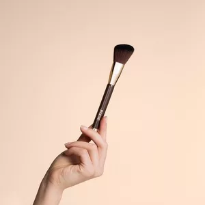 Nabierz odrobinę różu lub bronzera na pędzel. Delikatnymi ruchami aplikuj produkt na policzki, kości policzkowe, linię szczęki lub czoło, zgodnie z potrzebami.