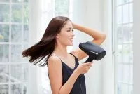 Tryb naprzemiennej temperatury: inspirowana profesjonalnym suszeniem w salonie fryzjerskim. Najpierw wzdłuż łusek włosy są suszone gorącym powietrzem, a następnie są schładzane zimnym. Dzięki temu są jeszcze gładsze.
