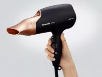 Profesjonalna suszarka do włosów Panasonic posiada innowacyjną dyszę z dodatkowym generatorem nawilżających cząsteczek nanoe. Dzięki temu włosy nie puszą się, nie niszczą, a są gładkie i lśniące. Cząsteczki nanoe wnikają w głąb włosów i nawilżają je dla efektu zdrowych o gładkich pasm, bez puszenia i zniszczeń. Ponadto suszarka posiada dyszę szybkiego suszenia, przez którą emitowane są dwa strumienie powietrza: delikatny i silny. Ten wyjątkowy mechanizm suszy włosy od nasady, więc włosy i skóra głowy są zdrowe i piękne. Urządzenie posiada 3 ustawienie prędkości i 4 ustawienia temperatury, przycisk zimnego powietrza i dyfuzor. yków.