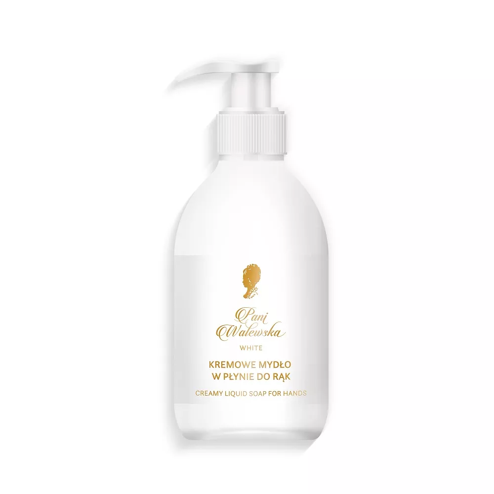 Pani Walewska White kremowe mydło w płynie do rąk to doskonały wybór dla osób poszukujących delikatnej, a zarazem skutecznej pielęgnacji dłoni. Dzięki wyciągowi z owoców oraz kompleksowi witamin mydło to tworzy delikatną pianę, która łagodnie oczyszcza, odświeża oraz nawilża skórę, pozostawiając ją miękką i przyjemnie pachnącą. Idealne do codziennego użytku, otula dłonie słodko energetycznym zapachem wanilii i białych kwiatów, wzbogaconym zmysłową ambrą.