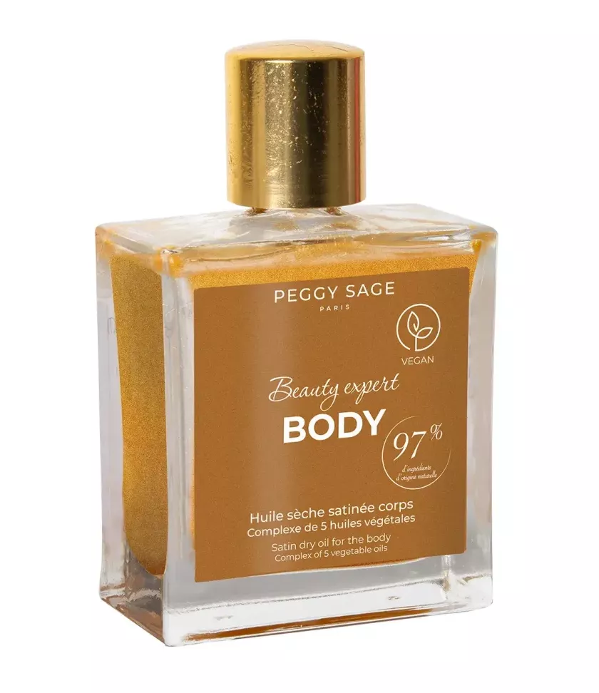 Odkryj wielofunkcyjny olejek Peggy Sage Beauty Expert Body, który podkreśla piękno skóry i włosów. Ten suchy, aksamitny olejek szybko się wchłania, zmiękcza skórę i pozostawia na niej subtelną poświatę złotych drobin. Dzięki niemu skóra staje się jedwabiście gładka i otulona delikatnym zapachem wanilii.