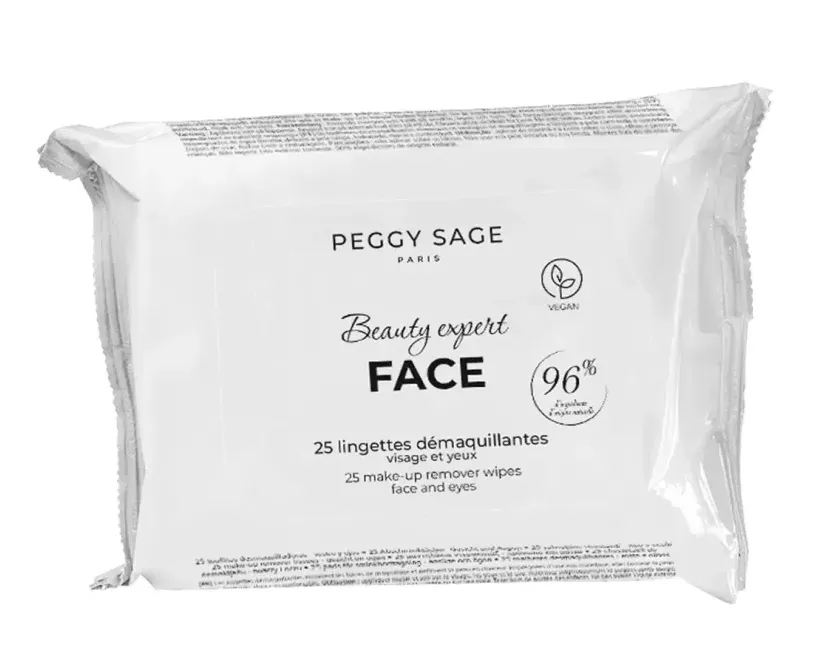 Chusteczki do demakijażu Peggy Sage to idealne rozwiązanie dla szybkiego i delikatnego demakijażu twarzy i oczu, niezależnie od miejsca, w którym się znajdujesz. Nasączone intensywnie płynem, bazującym w 96% na składnikach pochodzenia naturalnego, skutecznie oczyszczają skórę, nie pozostawiając tłustego filmu. Dzięki wyjątkowej formule, skóra pozostaje nawilżona, a chusteczki nie wysuszają jej ani nie powodują podrażnień oczu. Produkt testowany pod kontrolą dermatologiczną i okulistyczną, zapewnia czystą, miękką i delikatnie pachnącą skórę, gwarantując komfort przy każdym użyciu.