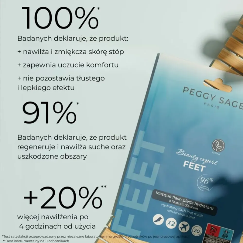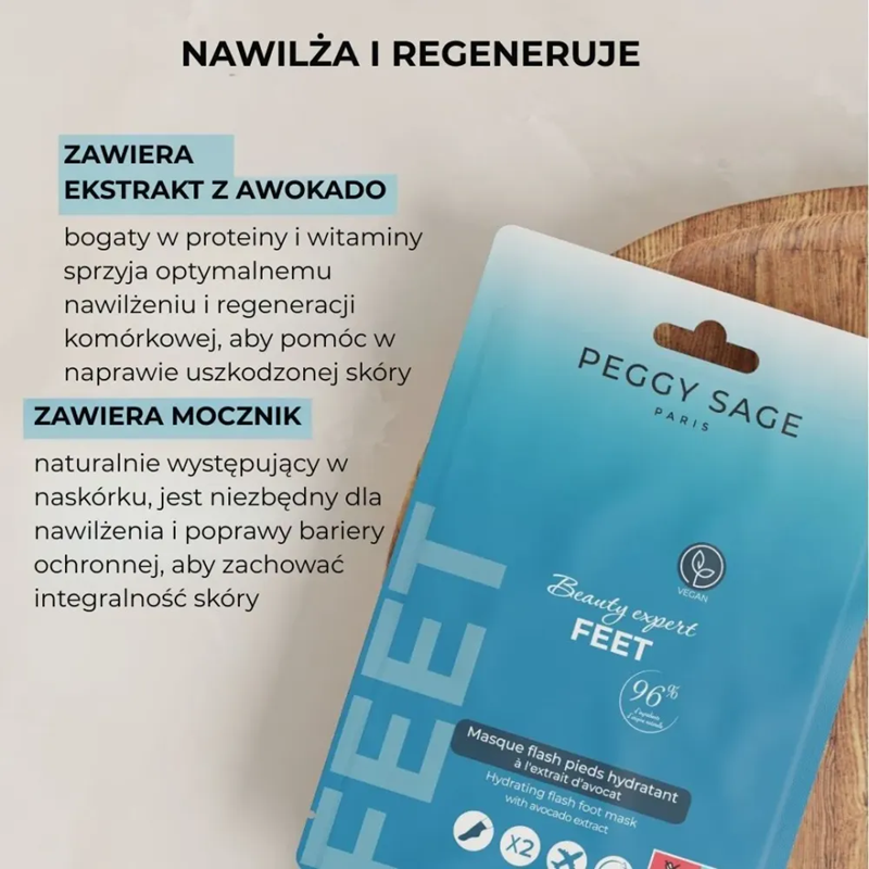Odkryj profesjonalną pielęgnację stóp z Peggy Sage Flash – nawilżającymi skarpetkami do stóp, które zapewniają intensywną regenerację oraz głębokie nawilżenie nawet najbardziej przesuszonej i szorstkiej skóry. Innowacyjna maska z ekstraktem z awokado sprawia, że już po jednym użyciu stopy są jedwabiście gładkie i miękkie – jak po zabiegu SPA w domowym zaciszu. Zapomnij o uczuciu suchości i zmęczenia, wybierz wygodny sposób na piękne, zadbane stopy.