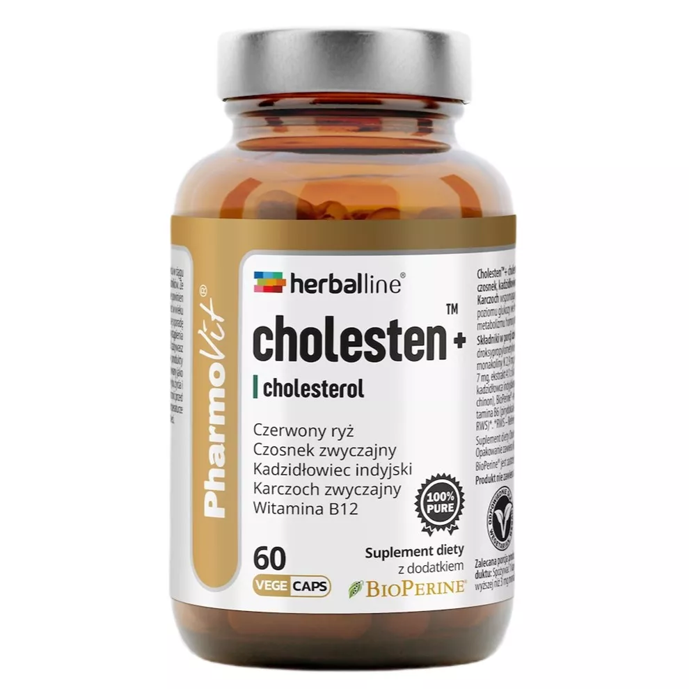 Pharmovit Cholesten + Cholesterol to zaawansowany suplement diety, który łączy w sobie moc sześciu ekstraktów roślinnych, witamin oraz BioPerine®. Produkt został stworzony z myślą o wspieraniu prawidłowego poziomu cholesterolu we krwi oraz wspomaganiu metabolizmu tłuszczów.