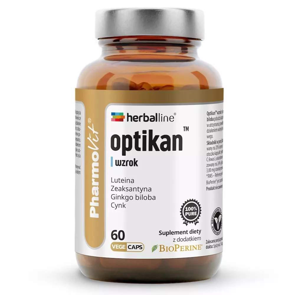 Pharmovit Optikan wzrok to suplement diety skomponowany z myślą o wsparciu zdrowia oczu. Zawiera mieszankę trzech ekstraktów roślinnych, witamin, minerałów oraz BioPerine®. Unikalna formuła wspiera krążenie obwodowe dzięki Ginkgo biloba, co może przyczynić się do lepszego widzenia i słyszenia. Cynk zawarty w produkcie pomaga w utrzymaniu prawidłowego widzenia, a ekstrakt z aronii czarnej chroni komórki przed wolnymi rodnikami. Dodatkowo, witamina C wspiera prawidłowe funkcjonowanie układu odpornościowego.