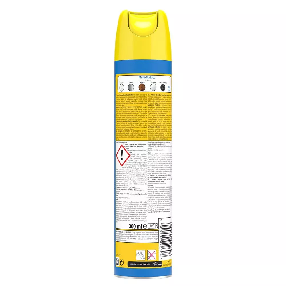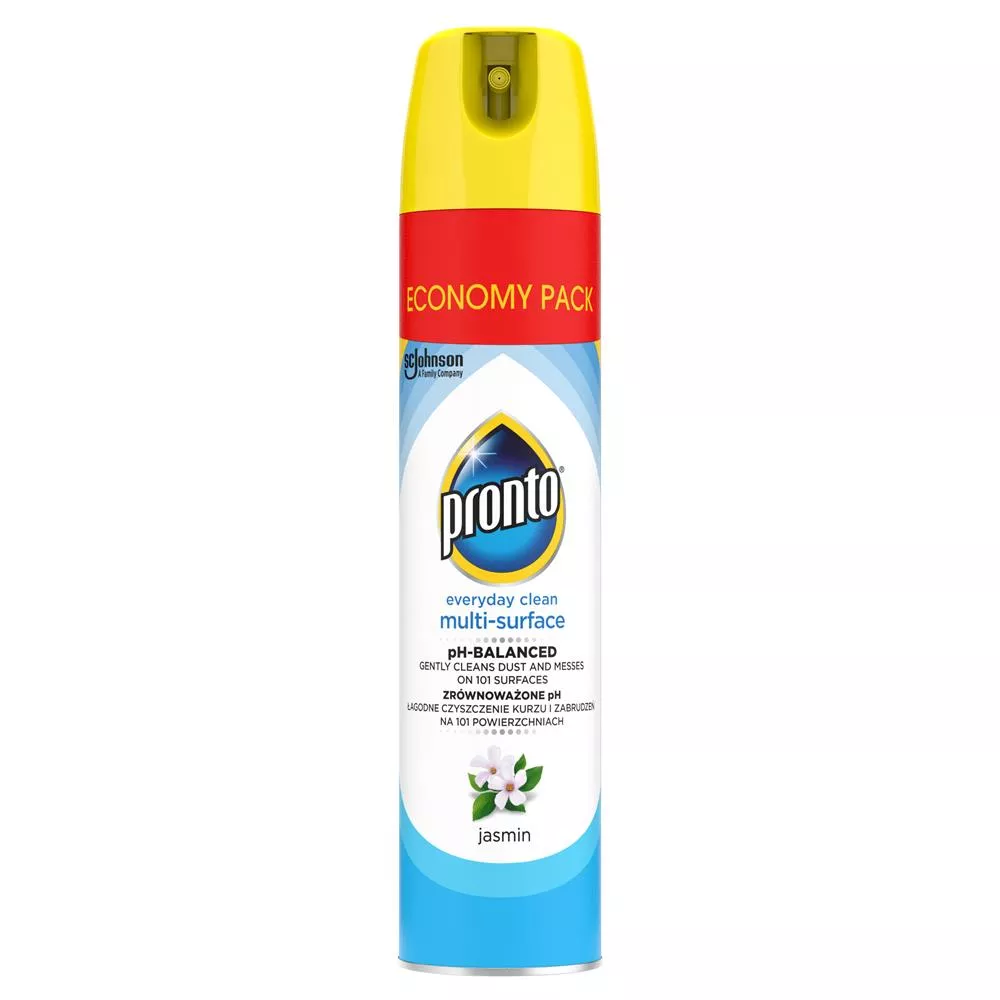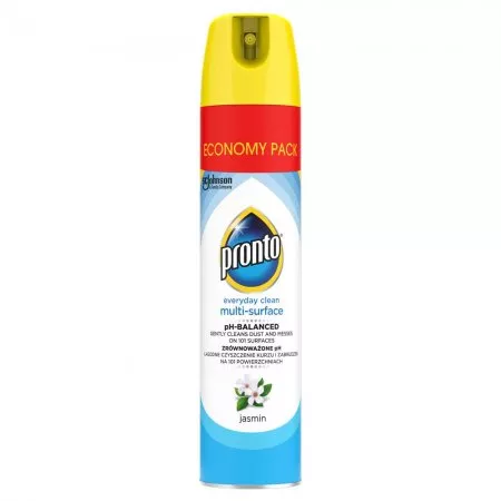 Pronto Everyday Clean Multi-Surface to wielopowierzchniowy aerozol do codziennego usuwania kurzu i zabrudzeń, który zapewnia skuteczne i delikatne czyszczenie różnych powierzchni w domu. Dzięki 100% naturalnemu propelentowi – czyli czystemu powietrzu – jest bezpieczny dla Ciebie i środowiska. Jego przyjemny, jaśminowy zapach sprawia, że sprzątanie staje się jeszcze bardziej komfortowe.