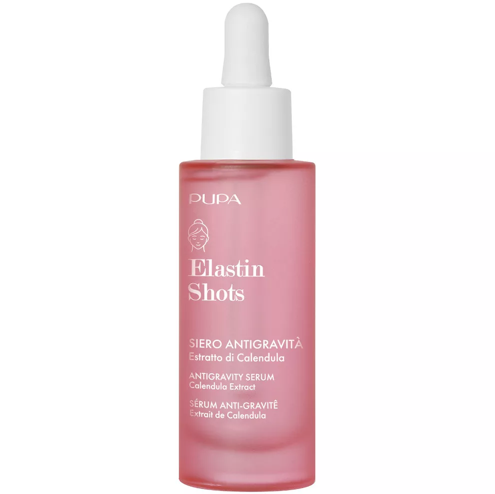 Płynne i lekkie serum do twarzy Pupa Elastin Shots. Poprawia elastyczność skóry przeciwdziałając jej wiotczeniu wokół profilu twarzy. Błyskawicznie się wchłania. Zawiera ekstrakt z nagietka lekarskiego, który pomaga skórze bronić się przed procesami starzenia. Stymuluje syntezę kolagenu i elastyny, poprawiając jędrność i elastyczność skóry. Z kolei betaina i erytrol sprawiają, że cząsteczki wody obecne w skórze są stabilne i spójne.