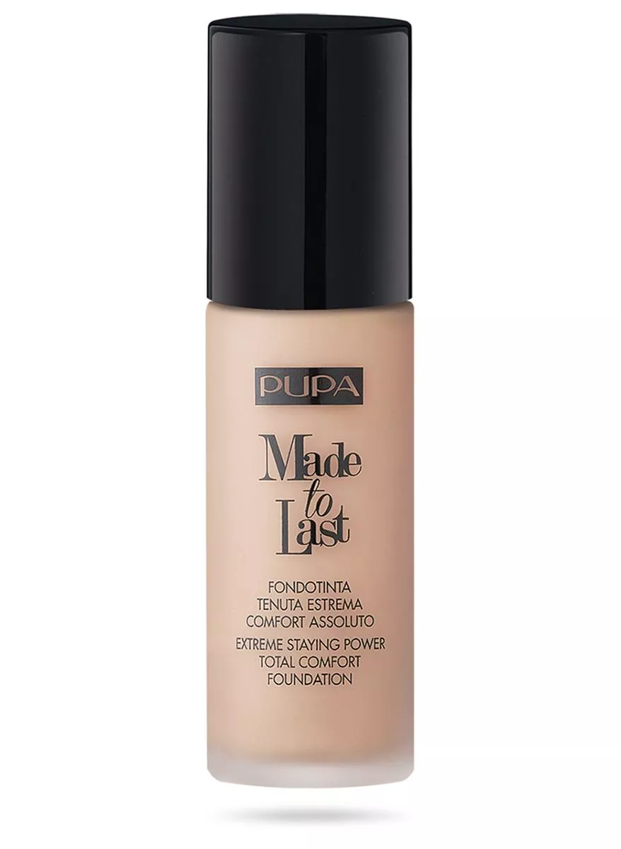 Podkład Pupa Made To Last to kosmetyk, który zapewni Ci matowe wykończenie oraz nie spowoduje wysuszenia oraz ściągnięcia skóry. Lekka konsystencja nie powoduje wysuszenia oraz ściągnięcia skóry. W składzie kosmetyku znajdują się ekskluzywne pigmenty Last&Fix, które czynią skórę jedwabistą. Produkt posiada krycie średnie do wysokiego. Już cieniutka warstwa przykrywa wszelkie niedoskonałości. Podkład szybko stapia się ze skórą, dzięki składnikowi powłokotwórczemu. Dzięki temu efekt utrzymuje się przez cały dzień bez konieczności poprawek. Podkład jest odporny na wilgoć oraz wysokie temperatury.