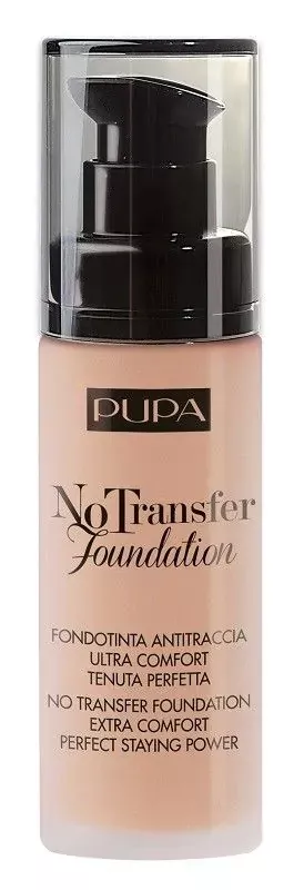 Jeżeli marzysz o perfekcyjnym makijażu, sięgnij po trwały podkład do twarzy Pupa No Transfer. Kosmetyk ten nie tylko minimalizuje niedoskonałości i matuje, ale także nawilża, poprawia elastyczność, wygładza i zapewnia ochronę przeciwsłoneczną, dzięki temu, że zawiera filtr ochronny SPF 15. Poza tym podkład nie ściera się i nie zostawia śladów - do 14 godzin. Jest to kosmetyk hipoalergiczny - testowany dermatologicznie. Lekka konsystencja ułatwia aplikację. Doskonałe krycie wcale nie oznacza, że podkład stworzy efekt maski - nie obawiaj, osiągniesz z nim naturalny wygląd.
