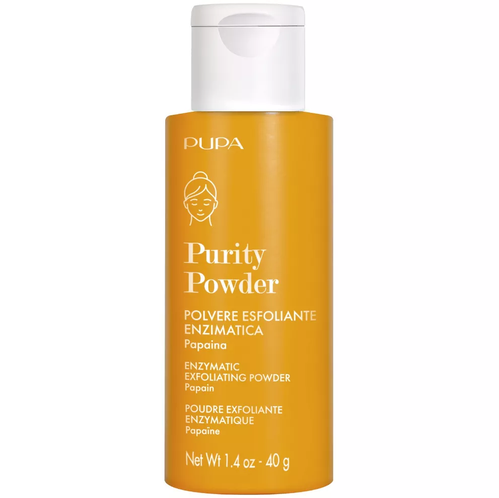 Puder enzymatyczny do twarzy Pupa Purity Powder w kontakcie z wodą przyjmuje konsystencję złuszczającego kremu. Ziarna orzecha włoskiego w sposób mechaniczny pozbywają się najpłytszej części naskórka, zapewniając natychmiastowy efekt wygładzenia. Z kolei papaina zawarta w pudrze złuszcza poprzez rozpuszczanie martwych komórek warstwy rogowej naskórka. Kosmetyk cechuje się zrównoważoną formułą bez marnotrawienia wody.