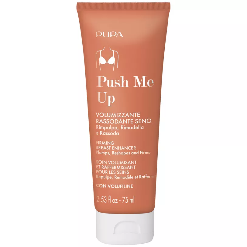 Kuracja powiększają biust Pupa Push Me Up działa błyskawicznie i intensywnie. To doskonałe rozwiązanie dla kobiet, które chcą szybko uzyskać efekt pełniejszych i jędrnych piersi. Formuła szybko się wchłania. W składzie znajduje się ekstrakt z gardenii azjatyckiej, który wspomaga gromadzenie lipidów w komórkach tłuszczowych i stymuluje ich fizjologiczne odkładanie się w warstwie skóry. Dzięki temu zwiększa się objętość piersi. Ponadto ekstrakt z kigelli afrykańskiej działa ujędrniająco.