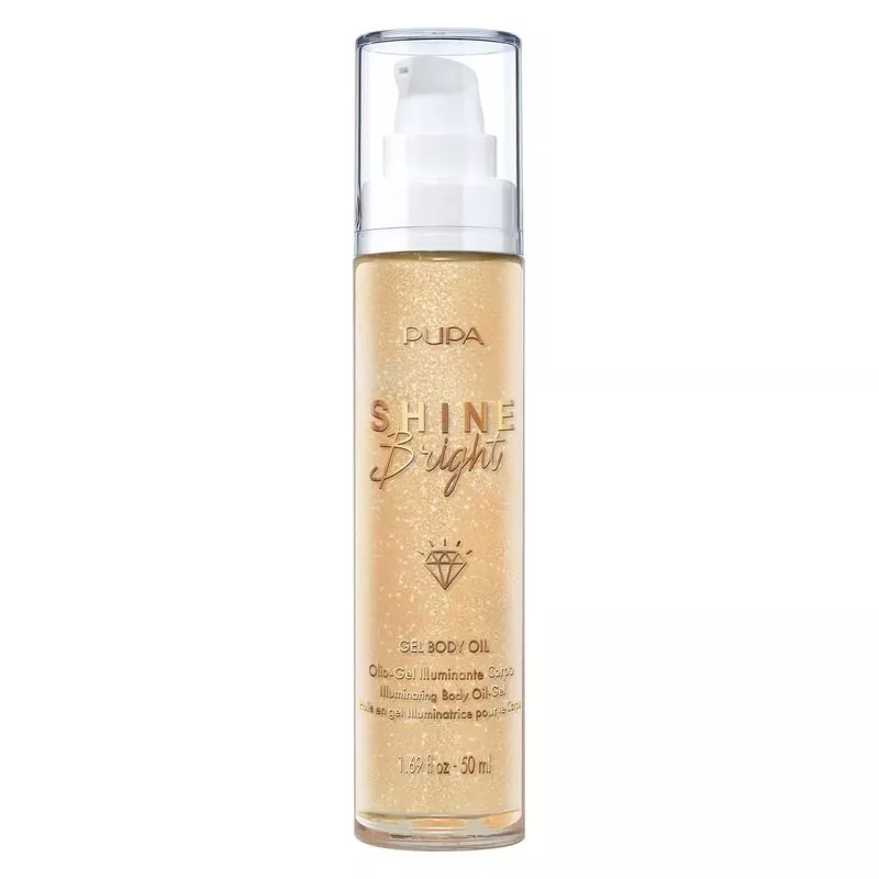 Olejek do ciała Pupa Shine Bright odżywia i wzmacnia skórę, tworząc niezwykły efekt blasku. Jedwabista i zmysłowa olejowo-żelowa konsystencja z bardzo wysokim procentem olejków o działaniu odżywczym, który szybko się wchłania, bez uczucia tłustości i obciążania skóry.