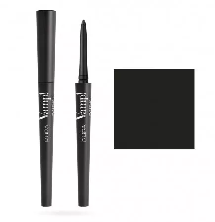Maksymalna intensywność koloru i wyjątkowa trwałość w ołówku, który oferuje niezwykłą wydajność! Kredka do oczu PUPA lekko sunie po skórze. Niezwykle łatwy ołówek w aplikacji, niewiarygodnie gładko przesuwa się po skórze, zapewniając precyzyjną i wyraźnie zaznaczoną linię. Uwalnianie koloru jest natychmiastowe i równomierne. Produkt odporny na wodę i pot. Nie spływa i nie tworzy nieestetycznych smug. Może być używany jako eyeliner do obrysowania konturu oka lub jako kajal do zintensyfikowania spojrzenia. Opakowanie jest inspirowane kultowym kształtem Vamp! Tusz do rzęs. Wysuwana końcówka i ergonomiczny uchwyt pozwalają na łatwą i precyzyjną aplikację.