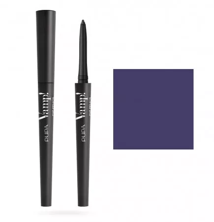 Maksymalna intensywność koloru i wyjątkowa trwałość w ołówku, który oferuje niezwykłą wydajność! Kredka do oczu PUPA lekko sunie po skórze. Niezwykle łatwy ołówek w aplikacji, niewiarygodnie gładko przesuwa się po skórze, zapewniając precyzyjną i wyraźnie zaznaczoną linię. Uwalnianie koloru jest natychmiastowe i równomierne. Produkt odporny na wodę i pot. Nie spływa i nie tworzy nieestetycznych smug. Może być używany jako eyeliner do obrysowania konturu oka lub jako kajal do zintensyfikowania spojrzenia. Opakowanie jest inspirowane kultowym kształtem Vamp! Tusz do rzęs. Wysuwana końcówka i ergonomiczny uchwyt pozwalają na łatwą i precyzyjną aplikację.