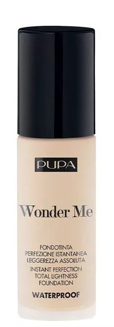 Podkład do twarzy Pupa Wonder Me pięknie ujednolica koloryt skóry. Wodoodporna formuła zapewnia długotrwały efekt. Podkład Pupa ma lekką, płynną formułę, co ułatwia aplikację produktu. Kosmetyk daje efekt pięknie wygładzonej, naturalnie wyglądającej cery. Lekka formuła sprawia, że preparat można stosować do cery wrażliwej, a także suchej i tłustej. To naprawdę kosmetyk do zadań specjalnych, odpowiedni na każdą porę roku. W składzie nie ma alkoholu, olejów, parabenów. Produkt testowany klinicznie i dermatologicznie.